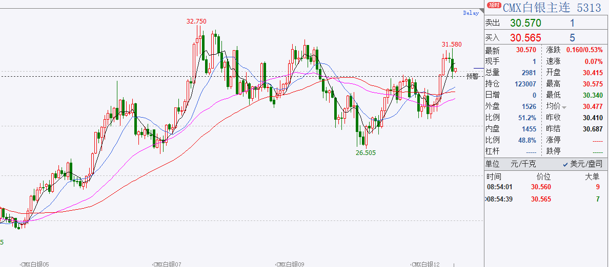 国际衍生品智库分析师认为,操作上,黄金价格长期看多,短期高位震荡,建议持多或回调加多,COMEX白银价格长期看多,短期调整企稳,建议持多或回调加多。