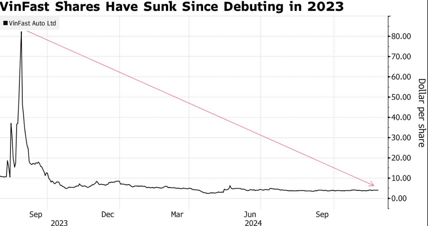 VinFast于2023年8月在美国股票市场正式上市,通过收购一家名为Black Spade Acquisition Co.的空壳公司正式完成上市。由于持续亏损且一度陷入经营困境,今年以来,其股价已暴跌约53%。